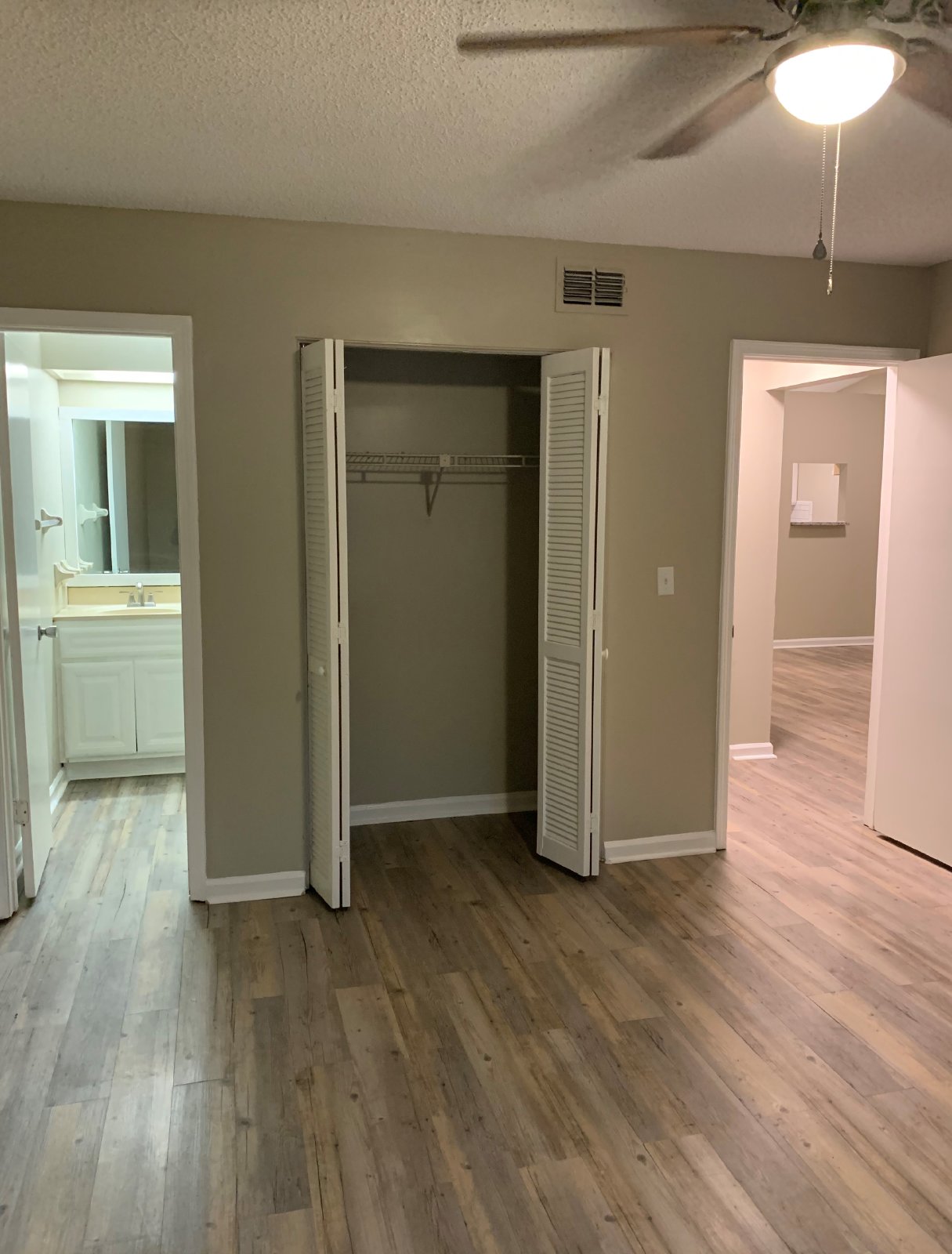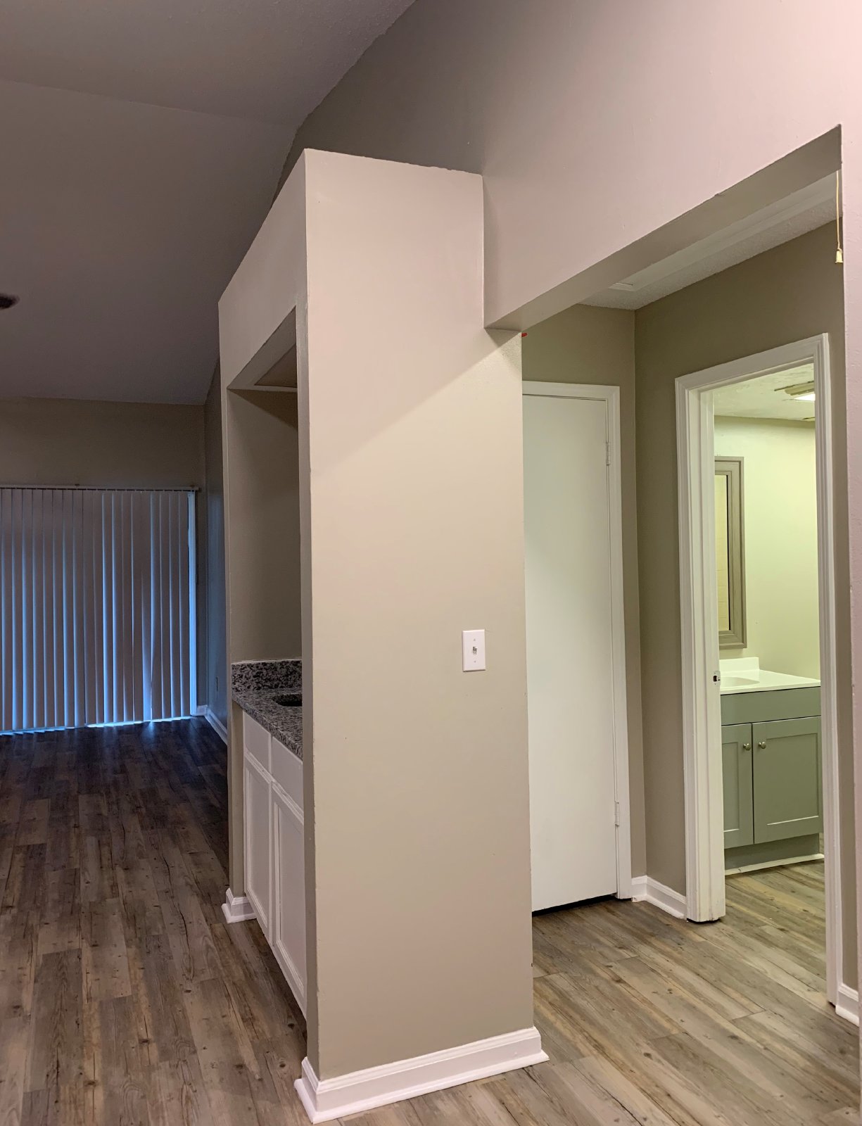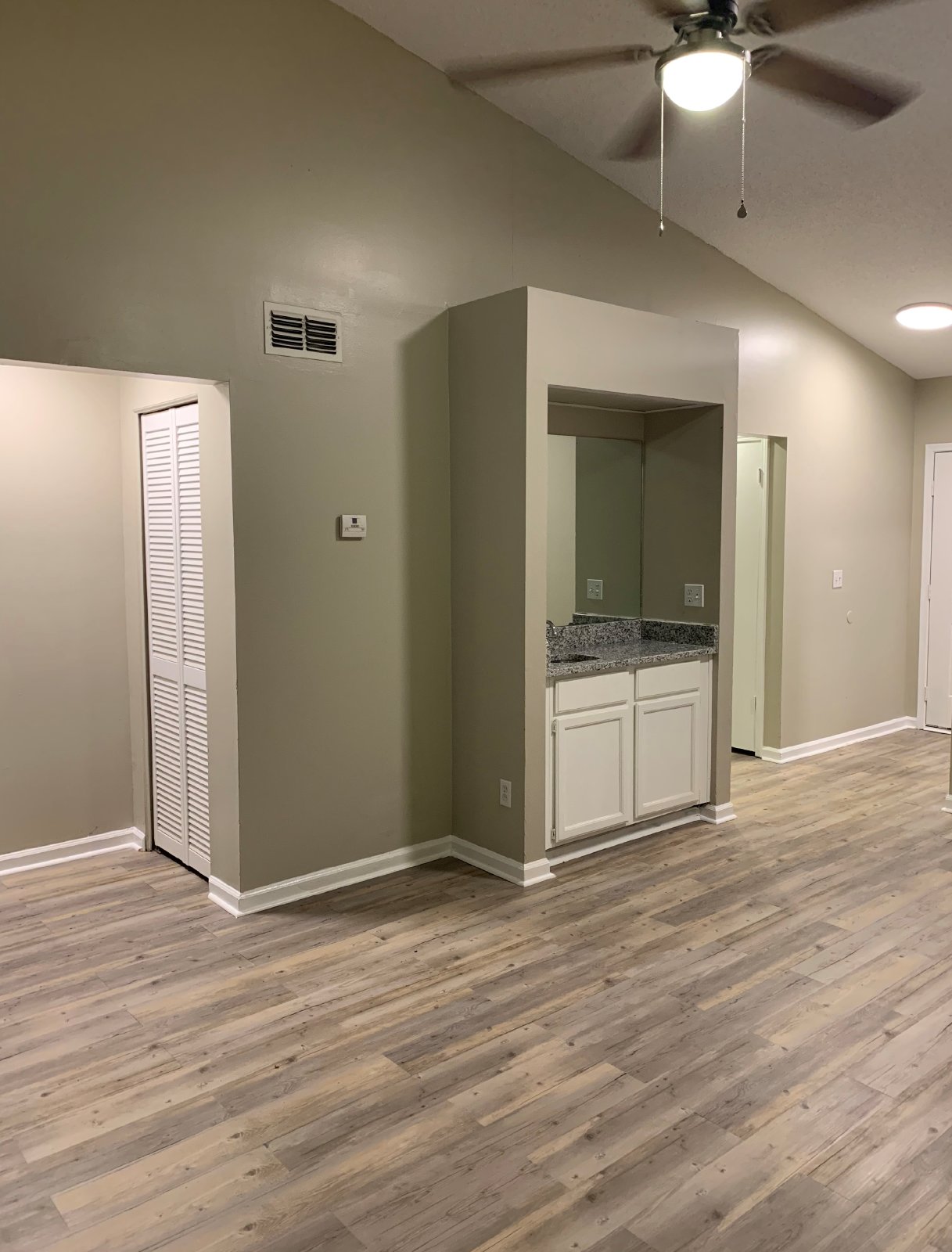 Spacious two-bedroom-two-bathroom single story apartment. Recently renovated. Luxury vinyl plank flooring throughout. Large bedrooms with ample closet space. The master bedroom has an attached bathroom with a walk-in shower. The kitchen features modern cabinets, granite countertops, and updated appliances; dishwasher, stove, and refrigerator. Plenty of cabinet space, and extra hall closets make room for storage! Spacious living room with separate dining room, wet bar, vaulted ceilings, decorative fireplace, and ceiling fan. Sliding glass door leads to back covered patio with laundry room with washer/dryer connections, and quaint fenced-in backyard! Fresh paint throughout. Located off Ricker Rd., Easy access to I-295 and I-10, Minutes from dining and shopping destinations, schools, and community parks!